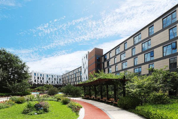 位于燕郊潮白河畔,与北京城市副中心隔河相望,燕达金色年华健康养护中心(燕达养老公寓)以15000张养老床位的庞大规模,构建起集医疗、康复、养老、娱乐、生活配套于一体的超级康养社区。绿地率平均达60%,紧邻三级甲等燕达医院,银行、超市、温泉、影院等配套设施一应俱全,实现“医疗就在身边,生活自在便捷”的康养理想。