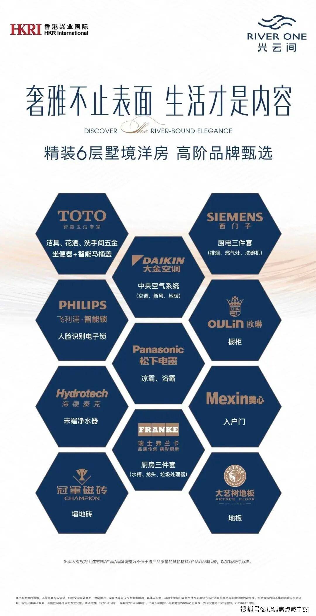 其次,精装配置质感十足。洋房户型不仅做到了省心的精装,更是精选一线品牌精益求精,很多配置都媲美一线豪宅装标: