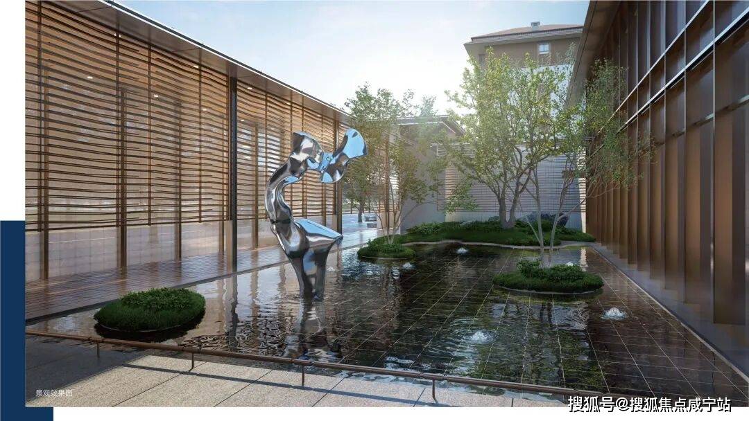 水上寻净:中心水上会客厅,搭配景观廊架、观赏水景,将室内功能拓展至室外,演绎水幕上的隐世会客之道;